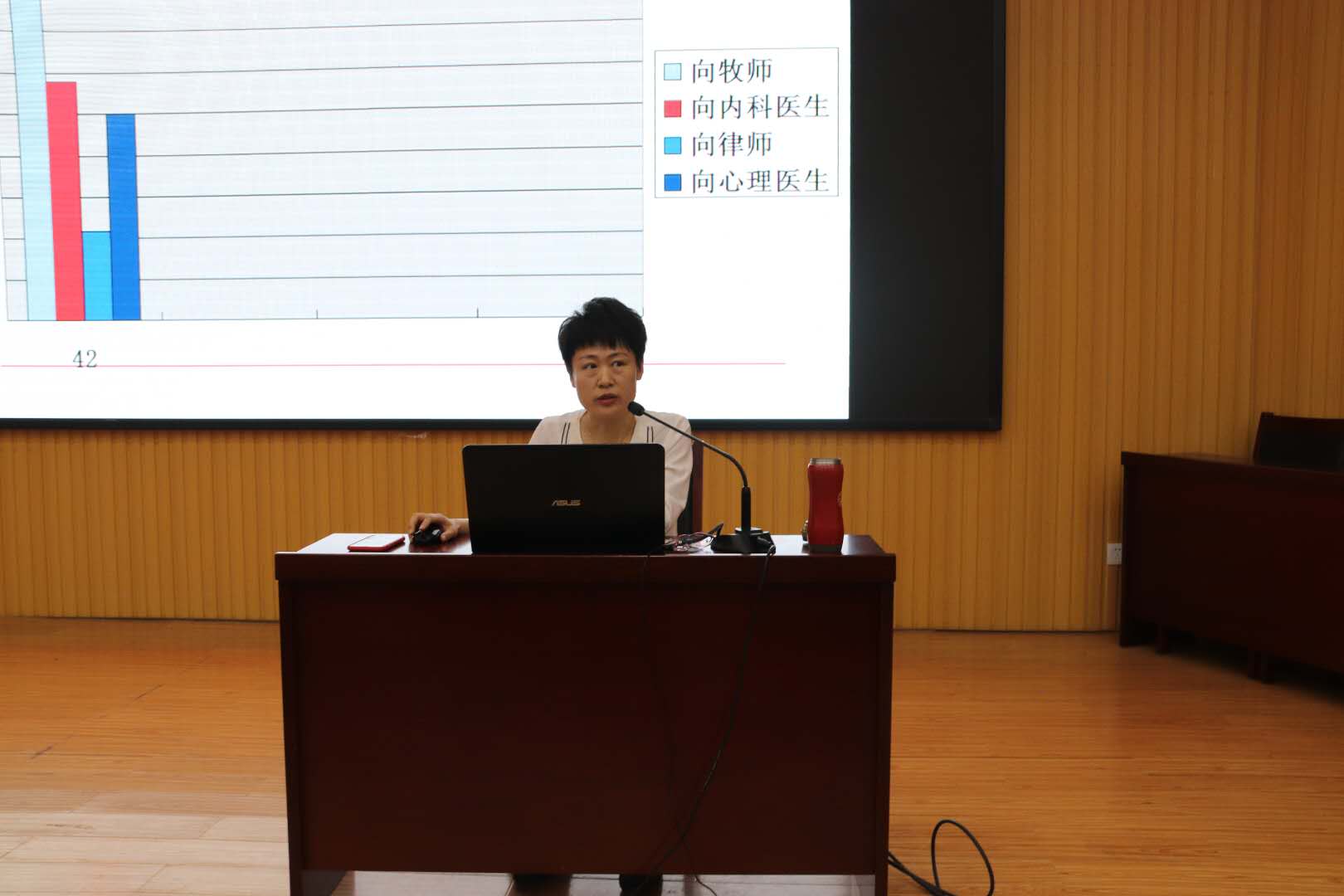 报告以一场趣味心理压力测试展开,通过讲述心理学故事阐述了压力的本质及压力作用于身体时所产生的非特异性反应和应激认知交互作用模式,用图解的形式揭示出压力的双重性作用,它如同小提琴的弦,松则无声紧则断,形象的比喻瞬间让同学们对压力有了正确的认识;主讲人结合积极心理学中的典型案例,分析了乐观主义和悲观主义的差别,重点讲述了压力的应对管理方法和ABC理论,指出可以通过管理时间、增加资源、寻求社会支持等方式来释放压力,最终达到调整心态、合理认知的目的。