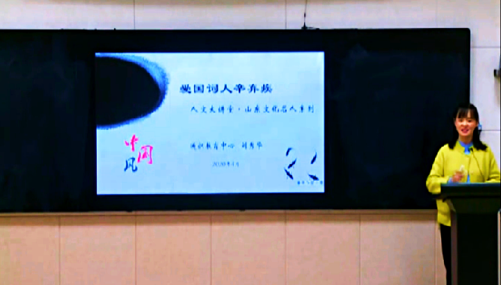 5月7日、8日下午,学院第49场人文素养大讲堂在钉钉网课顺利播放,这是线上“山东文化名人”系列人文讲座的第二场。yl6809永利检测中心刘秀华老师作了“爱国词人—辛弃疾”的线上讲座,全院近9000人收看了讲座。