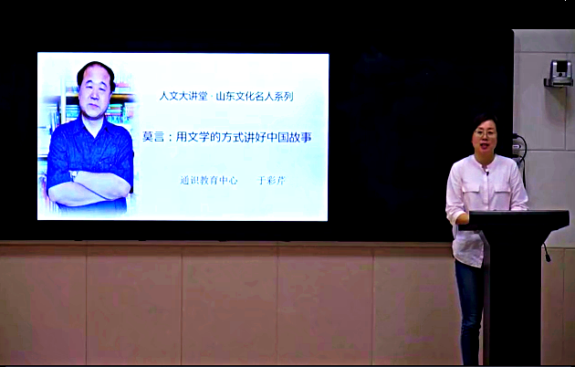 讲座以莫言如何讲述抗疫英雄故事此为切入点,结合莫言的代表作品,重点阐述莫言讲述中国故事的5种方式:一是以真人真事为原型;二是口语和书面语的综合运用;三是用儿童视角叙事;四是色彩鲜明;五是善于吸纳创新,倡议大学生用自己的方式讲好中国故事。