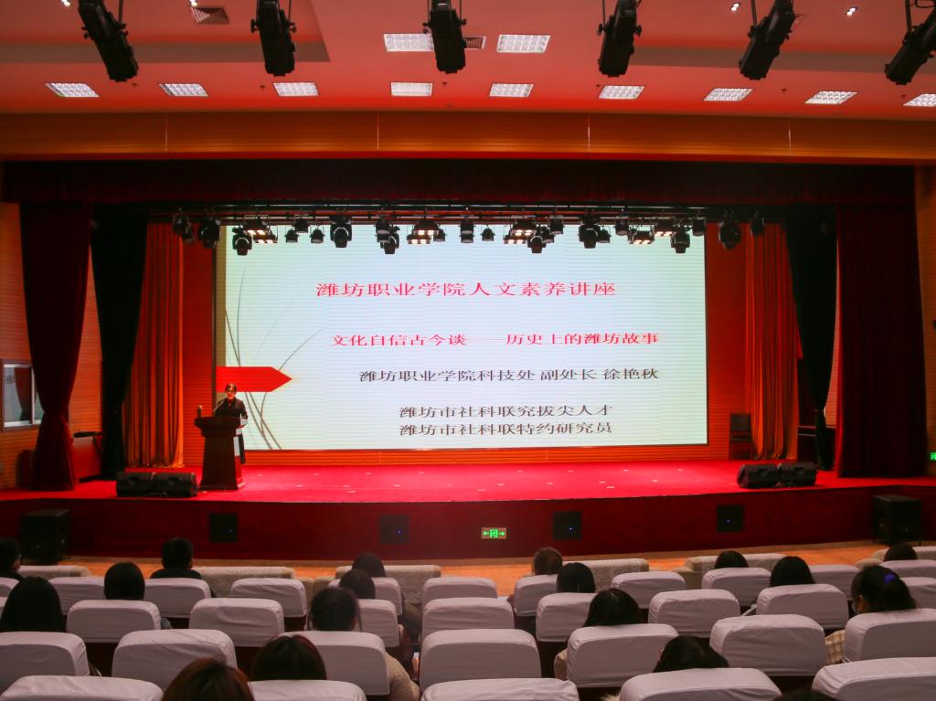 徐艳秋博士主讲的“潍坊故事”曾在“潍坊社科”公众号“潍坊市民大讲堂·微讲堂”栏目推出,对潍坊本土文化传承与创新具有很好的示范作用,受到潍坊市委宣传部和潍坊市社科联的高度肯定。主讲人用朴实的语言、丰富的史实、精美的故事,为大学生们奉献了一堂生动的“文化自信”讲座。(徐艳秋 常方亮供稿)