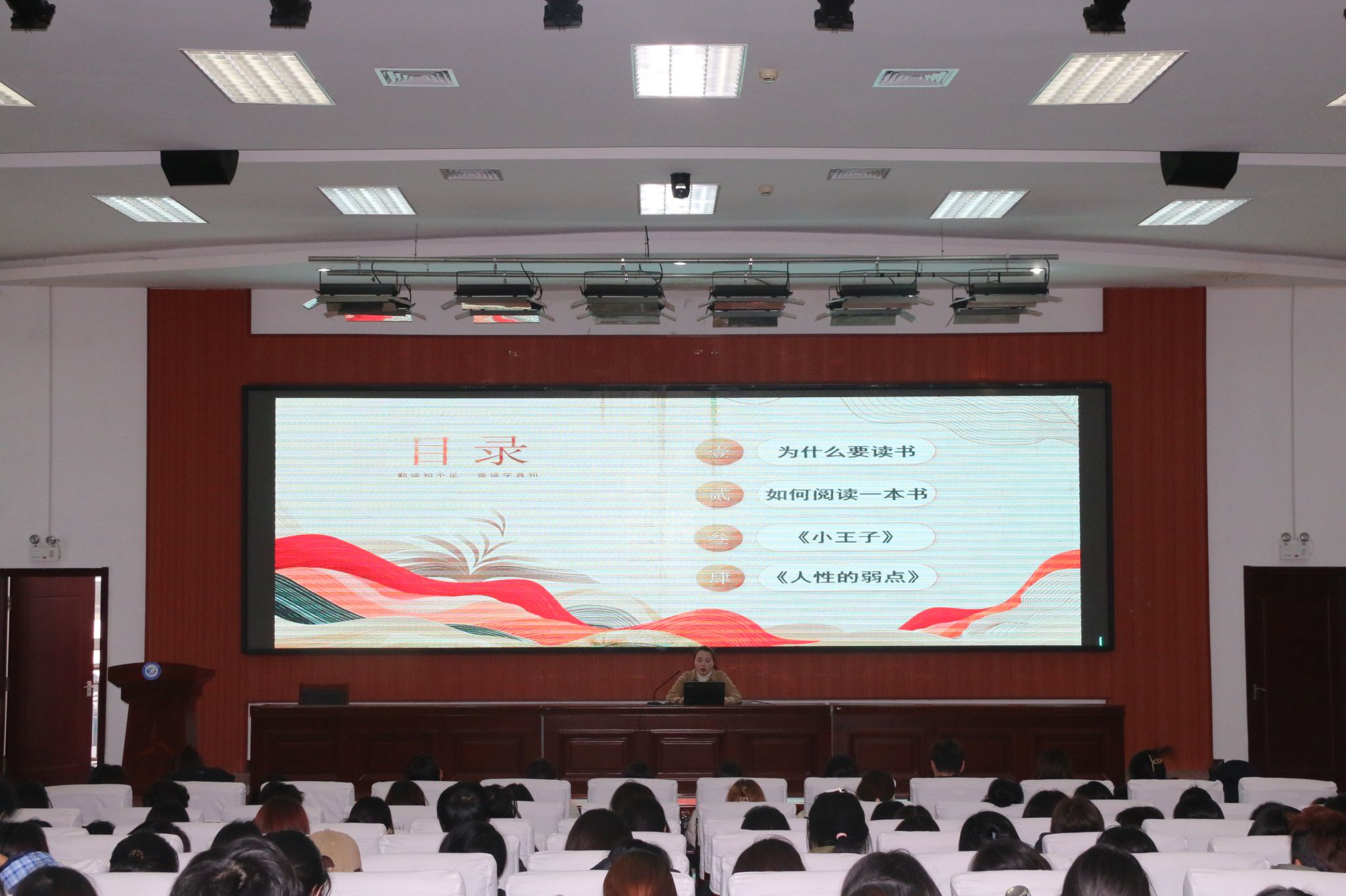 孙东梅老师毕业于辽宁师范大学,主要研究方向为图书馆学。孙老师首先介绍了读书的意义,她认为读书是改变气质最好的方式,是成本最低的自我修炼,是走近伟大心灵最短的距离。孙老师重点分享了“如何阅读一本书”,仔细讲解了基础阅读、检视阅读、分析阅读、主题阅读四个层次的阅读技巧。她结合阅读中“无从下手”“逗留”“倒退”等常见问题,指导同学们针对不同的阅读目的采用不同的读书方式。最后孙老师分享了读《小王子》《人性的弱点》时的读书经历和读书心得,鼓励同学们要让阅读成为一种习惯。
