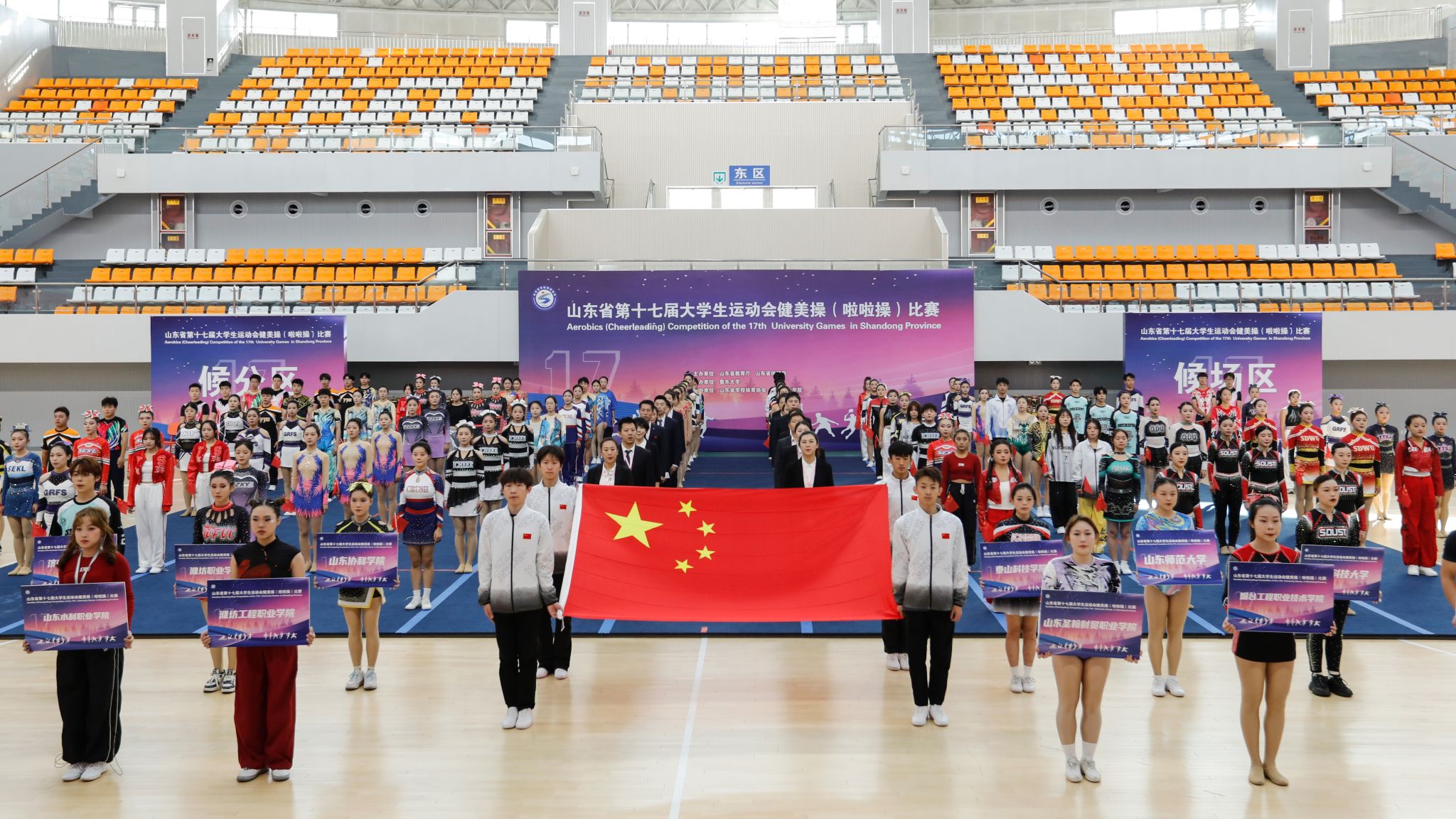 10月2日上午,在举国上下共同庆祝新中国75周年华诞的美好时刻,山东省第十七届大学生运动会健美操(啦啦操)比赛在我院滨海校区体育馆揭开帷幕。来自全省高校的50余支参赛队伍,800余名裁判员、教练员、运动员参加。山东省学校体育协会副会长、鲁东大学体育学院院长邱建国,学院党委委员、副院长赵宏坤出席开幕式。