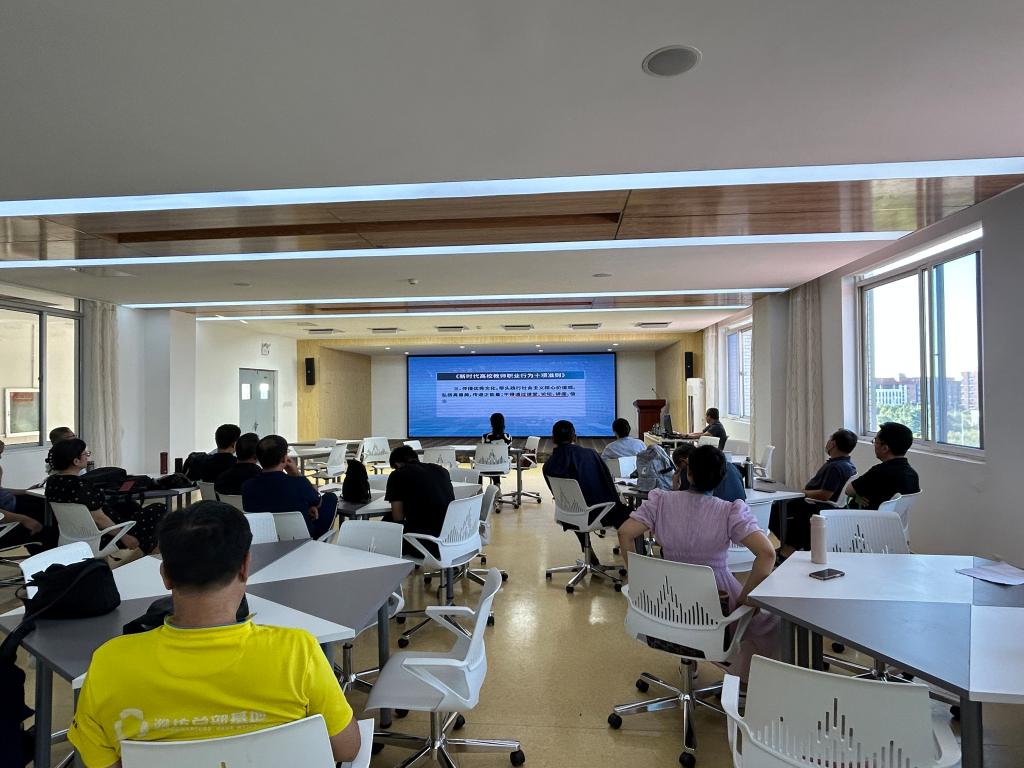 活动首先邀请学院师德宣讲团成员,教师工作部部长刘志艳进行了“培根铸魂,立德树人”的师德宣讲。刘部长从传统文化中学师德、从历史长河中思师德、在文化传承中践师德、从传统文化中悟师德四个方面深刻阐述了新时代“四有好老师”和“四个引路人”的内涵和要求。宣讲结束后,党支部负责同志讲授了以“加强师德师风建设,做新时代四有好老师”为主题的党课,指出在新时代的背景下,要以“四有”好老师的标准严格要求自己,从坚定理想信念、陶冶道德情操、涵养扎实学识和勤修仁爱之心四个方面入手,全面提升职业道德水平。最后,全体党员观看了“依法规范执教”师德警示教育片,以案为鉴、以案明纪,引导教师们坚定政治立场,端正师德师风,明确师德底线,努力成为党和人民满意的“四有”好老师。