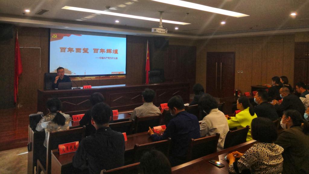 本次活动,化学工程学院党总支等五个党支部邀请学院思政课教学部形势与政策教研室史海亮主任为社区共建单位、社区党员做了《百年回望 百年辉煌 》的报告,史老师结合自己学习党史的体会从科学的理论指导,坚定的理论信念,强大的组织优势,坚实的群众基础,彻底的自我革命五个方面讲述了中国共产党为什么能由小变大,由弱变强,带领中国各族人民取得一个又一个辉煌成就的奋斗历程。报告深入浅出,深受到会共建单位社区党员的好评。